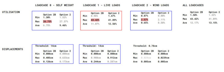 Option 2B Optimised – Utilisation and Displacement Diagram and Values