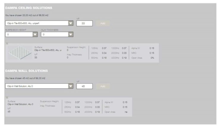 In the scenario of all structural elements being from concrete we have quite big Reverberation time, for 500Hz 8.4 sec. For the optimization an insulation was used for the wall & ceiling : CEILING – D-10, N T Panel / that will cover the half of the ceiling (realistic scenario) WALL – Clip-in Wall Solution, Alu 0 / that will cover the half of the interior walls. In this scenario the Reverberation time, for 500Hz is around 1sec, close to standards trying to achieve.