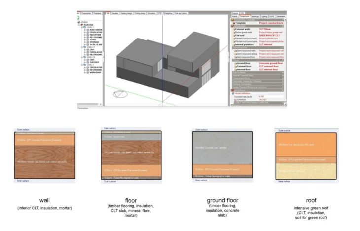 CASE 1 : new basic material (instead of brick & concrete-wood) with no insulation, to test the performance & supremacy of TIMBER MATERIALS