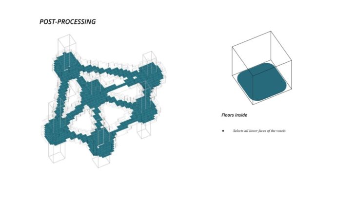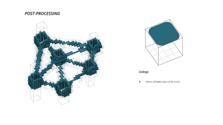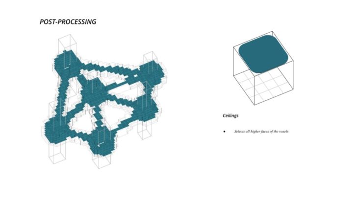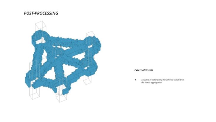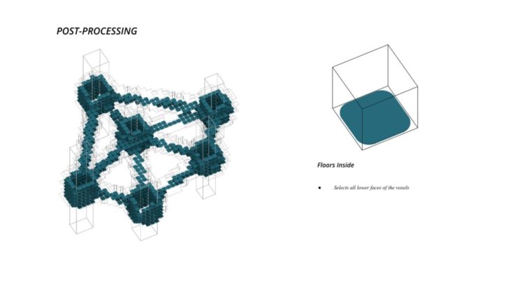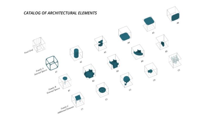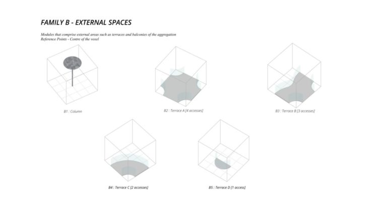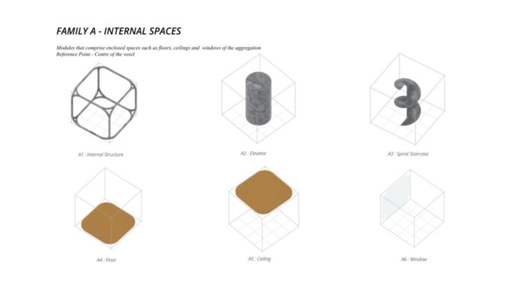 - The framework of the voxel is defined first, followed by Family A and B that define the overall structure while Family C defines the additional elements which follow the function of the space