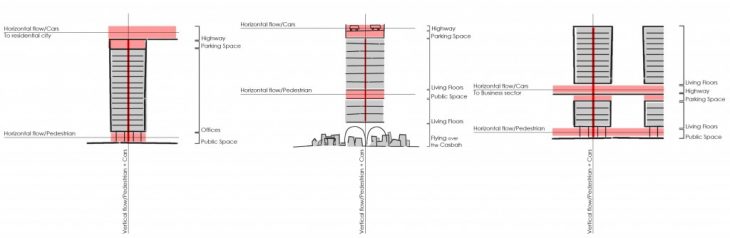 In the 3 projects : the ground is liberated for public usage / mobility was an important factor in the design process / they all had the same layers but in different order