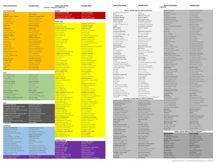 The list was recategorized depending upon which pollinator will pollinate which species of trees/plants. The Animalia class was categorized depending on which species will be affected first, second and third in the absence of pollination.
