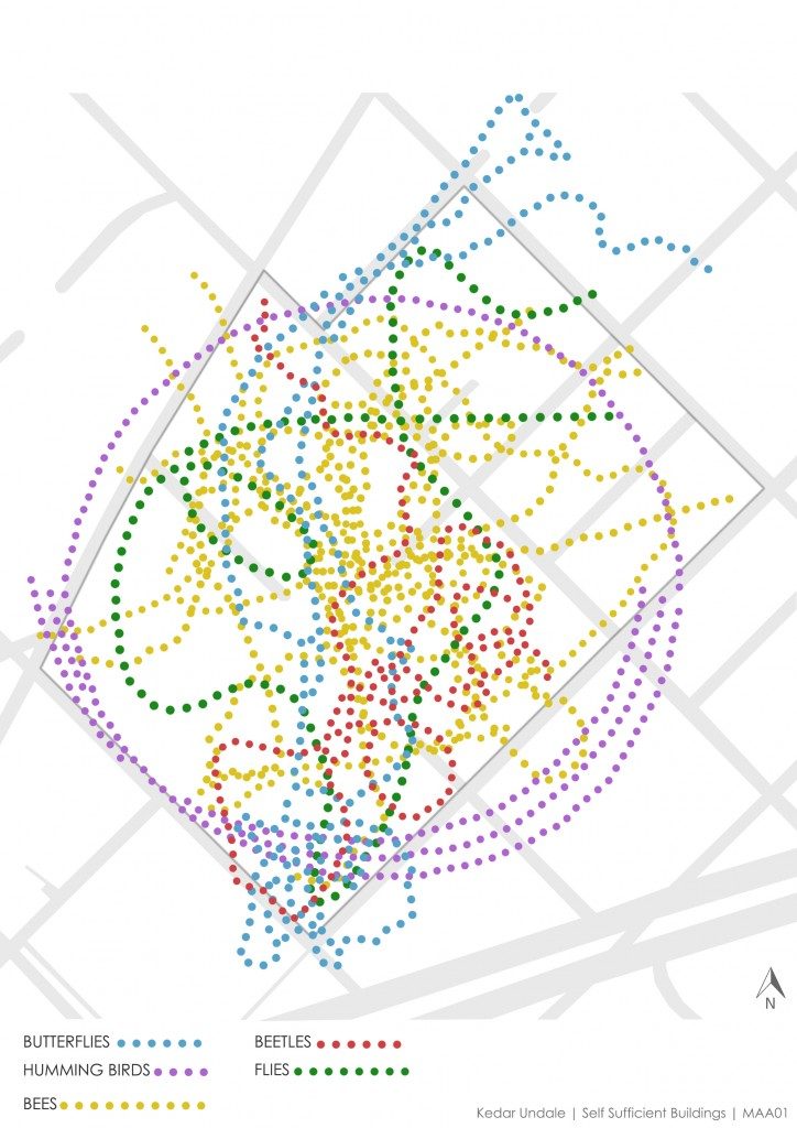 After finding this, the next step was to look at how these pollinators move and what are their patterns of trajectories. This was done to understand what is the natural behavior of these pollinators and to understand what species could be planted where on the site.