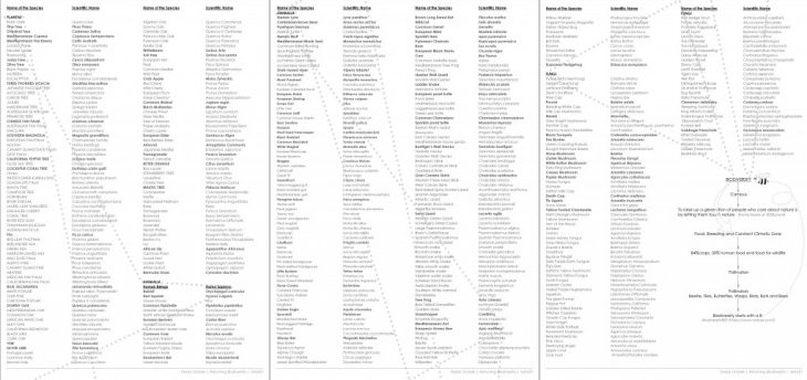 The first step was to find out the number of species that could come to the site, which were local to Barcelona and Spain. The list consisted of trees, plants, mammals, amphibians, arthropods, insects, fungi etc.,
