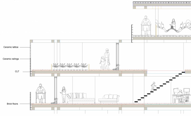 Porous Complex is the result of an eco-system based process which aims to answer the Environmental challenges in a complicated urban tissue. The context of the project is Barcelona city with Mediterranean Climate. The climate-oriented approach of this project has brought a porous shape for main tissue to have more interactive with Environmental and social level. This complex is designed for a neighborhood who are most immigrants. Being affordable was one of our goal. Making our material from the soil which we wanted to extract, Shaped the idea of using Earth brick for walls and Ceramic tiles for the facade.