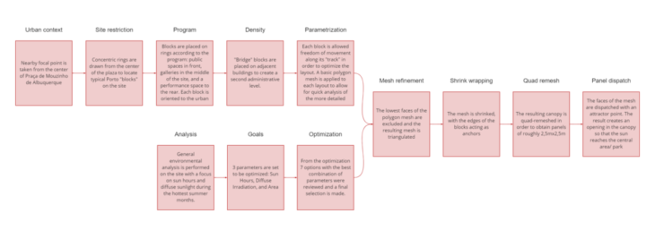 Porto Desconstruído explores the relationship between the cultural history of Porto and its evolving urban context around the site of the former Boavista Railway Station. Utilizing a program of simple boxes proportioned to typical building typologies in the surrounding neighborhood we developed a program for a cultural center including art and performance venues. A parametric layout based on the nearby urban focal point Praça de Mouzinho de Albuquerque was developed for optimization of natural light as well as the solar heat gain.