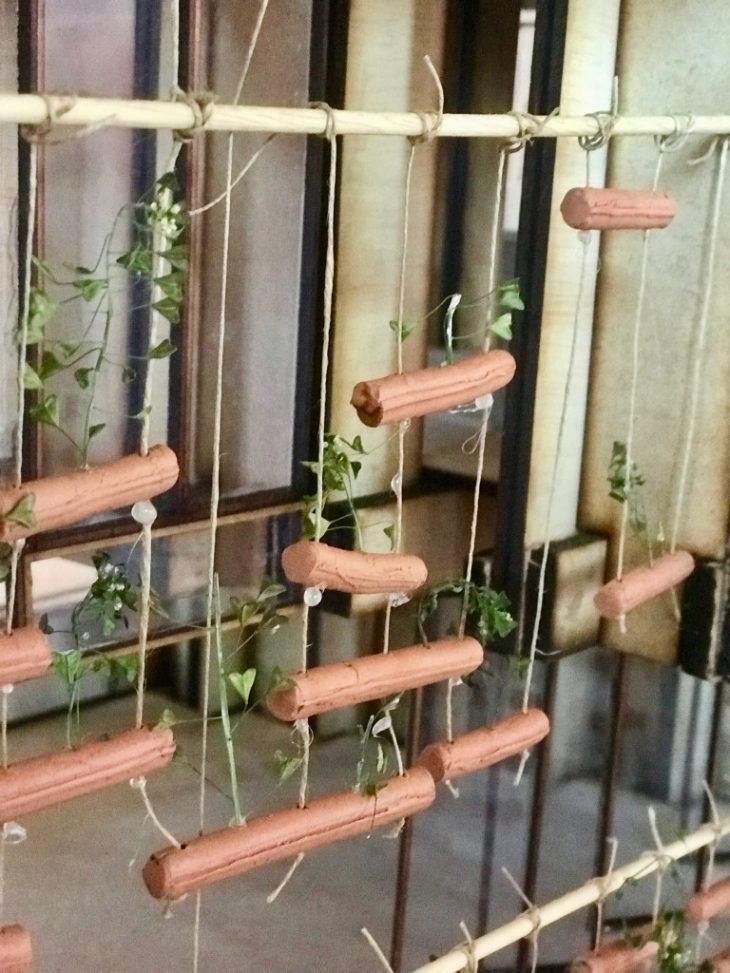 Hydroponic ceramic planters are placed with higher density where solar heat gain needs to be avoided
