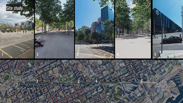 After analyzing the district we understood that the Avinguda diagonal acts as a central spine of the district and the 22@district are spread on both sides of this spine. This meant that the Avinguda diagonal could be the space of intervention that brings both sides of the innovation district together. To confirm our contemplation we did a site visit from Parc Glories to the Natural Museum of Science.