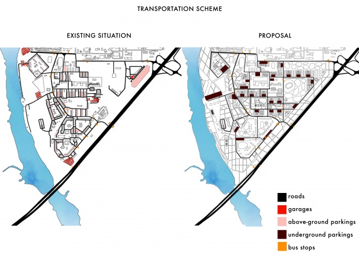 To make districts more comfortable and attractive for residents, and decentralise the city block division is proposed. Each of the blocks will have its own facilities and shared spaces for a more pleasant social activity between residents.