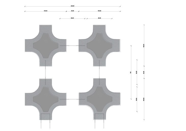 Breaking down the design of the referenced component, a limitation in the connection between elements can be observed. Each module provides with two strictly vertical connections and two angled ones. This results in a system in which four components essentially act as one module and it is the connection between those which defines the final geometry. By redesigning the component it is possible to include angled connections in all directions, therefore expanding the potential for complexity and range of geometries which can be achieved. Additionally, the fabrication and assembly time -and effort-, are significantly decreased. The newly created component is a solid piece, as opposed to the referenced which requires multiple attachments to be formed. As a result the new system includes notably fewer connections, therefore vulnerable points, leading to a stiffer, more stable structure.