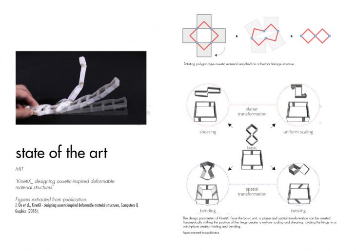 The research is based on the intention of developing adaptive structures which can achieve a gradient of stable states. The desired structures should be able to make the transition from state A to state B,C,D…,n, and return to their original form, in a repeatable reconfiguration loop.