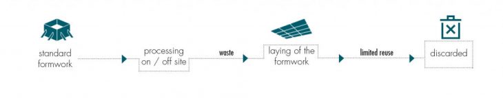 Flexible formwork as a sustainable cycle in re-purposing formworks used in construction with an aim to reduce construction waste which takes up to 30 % of total waste in certain cities in Europe