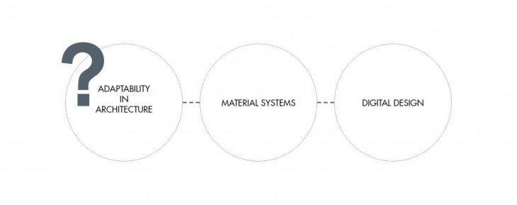 Adaptability in architecture is achieved through a hybrid of material systems research and digital design. In this research, a response to adaptability is studied in two paths: flexible dynamic formworks as a construction solution for freeform surfaces, and reconfigurable responsive structures that are pre-programmed and have a shape shifting ability post-construction.