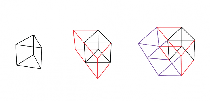 recursive aggregation using triangular prism base geometry with rotation every second aggregation