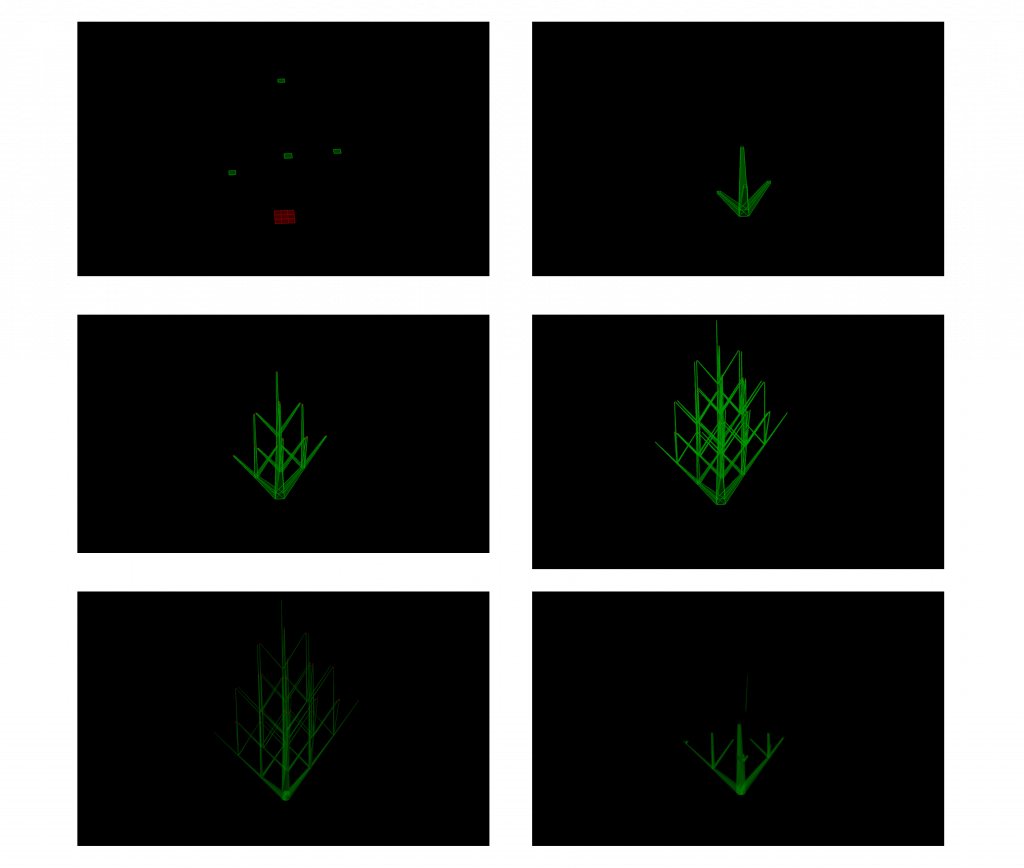 The chosen element from the pavilion, is one of the central columns with the idea to possibly carry the load of the roof through only one vertical element. To reach the desired goal, the geometry of the column was manipulated through bifurcation and distribution of the load bearing elements.