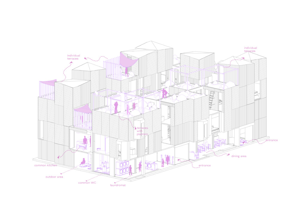 Collective Housing for Refugees in Istanbul – Mass Timber Collective Housing is a project of IAAC, Institute for Advanced Architecture of Catalonia developed for MMTD in 2021 by student Esin Zeynep Aydemir. Faculty: Minna Riska & Dagfinn Sagen. Course: MMTD02 – Projects 2