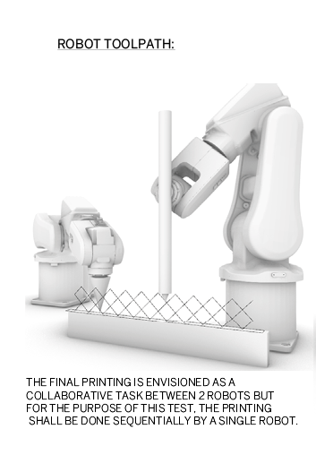 The printing strategy involved using 2 robots working collaboratively. The first robot would print the PLA filament reinforcement while the second would deposit the clay over the printed PLA.