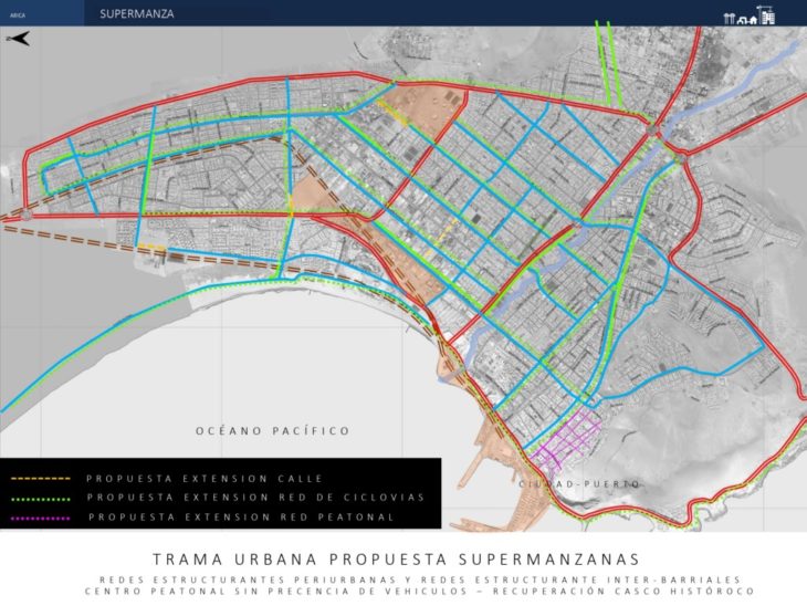 En esta etapa de análisis se estudian las componentes urbanas del caso de estudio y se analiza la viabilidad de la aplicación del Modelo de Supermanzanas aplicadas al contexto local para lograr el objetivo de remediar, reconvertir y/o regenerar espacios urbanos actualmente en desuso por motivos de alta contaminación de polimetales en la ciudad portuaria de Arica, Chile.