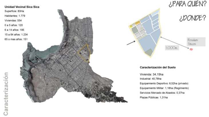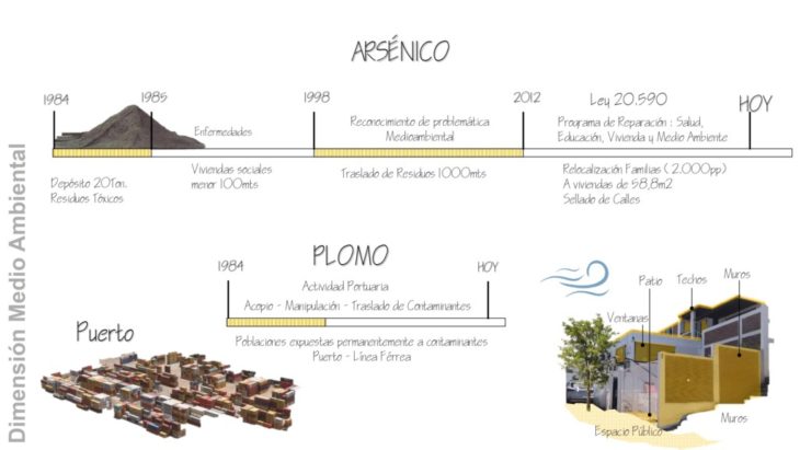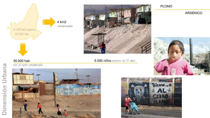 La ciudad portuaria de Arica se encuentra ubicada en el extremo norte de Chile, posee una superficie de 15.590km2 de los cuales 4km2 son suelos contaminados. Este territorio altamente degradado alberga el 13% de la población local, de los cuales mas de 5.000 son niños menores de 15 años.