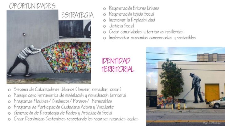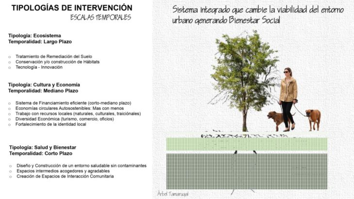 El proyecto busca identificar las heridas que existen en el territorio ocasionadas por el daño antrópico y crear un modelo de remediación urbana eco-sostenible cuyo objetivo principal es brindar bienestar y justicia social a sus ciudadanos.