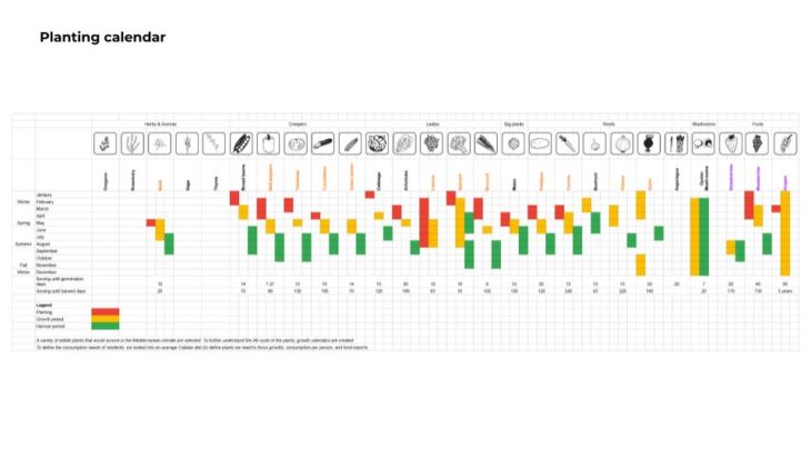 Dietry requirements and mediterranean climate also aided in informing the selection of plants for the growth system.