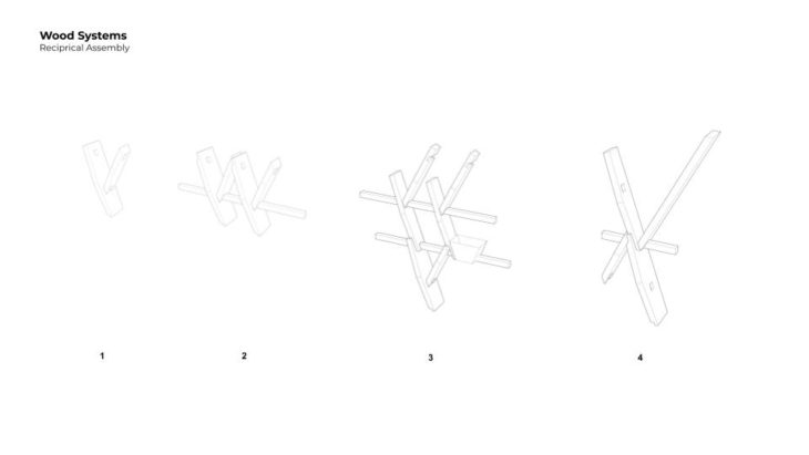 Only 40-50% of forested wood is recovered as processed lumber. Most of it is discarded as unusable pieces and converted into wood chips to be used or used as biomass. With the increase in proposals for mass timber architecture, the amount of wood waste will increase proportionally. Instead of Converting them into chips, we propose upcycling the discarded pieces by using them for a building skin that adds value to urban fabric by spacemaking.