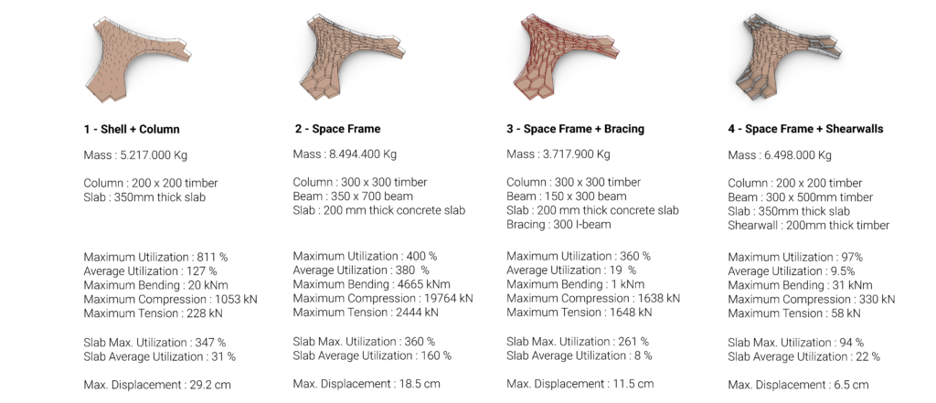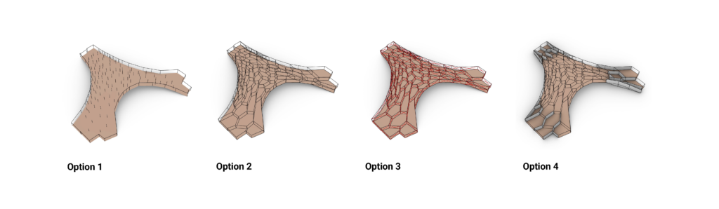 Four options are generated in this study, the evolution of the structures will be explained in the following sections