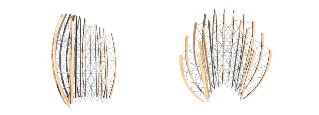 + THE BRIDGE // Timber space frame + Bracing