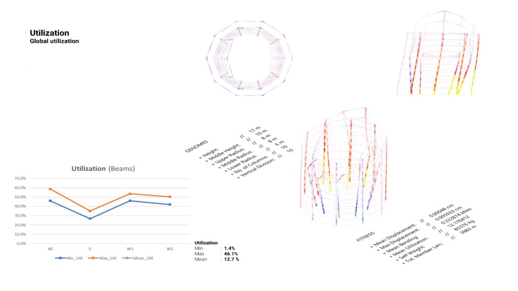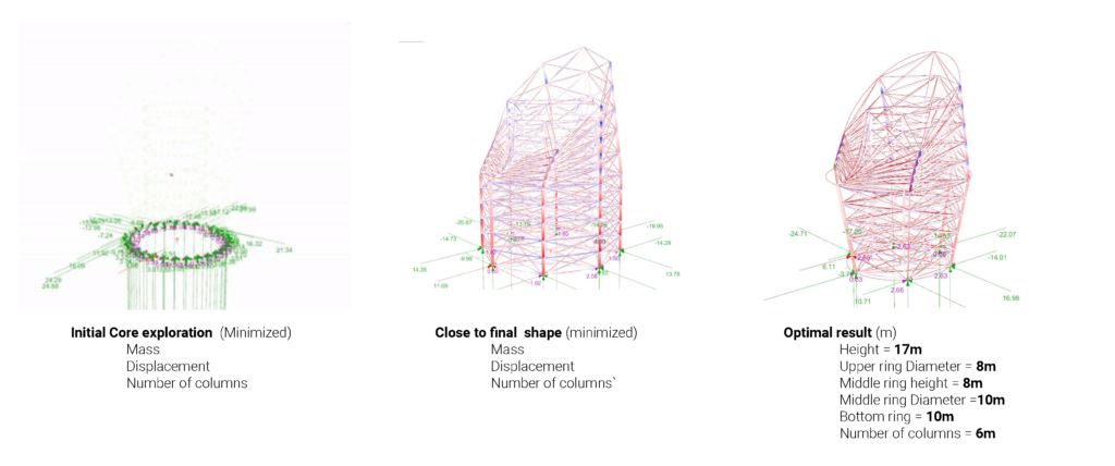 The first step is setting up the structural analysis models. This is done by running a genetic optimization of the form in an attempt to maximize shading below the structure.