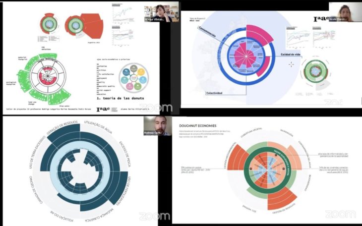 El acercamiento de escala se ha generado en primer lugar en un plan analitico: el primer ejercicio, basado en la teoría de “Doughnut economics” de Kate Raworth, proponía a los estudiantes de construir su propia dona, basada en el contexto de proyecto, a partir de sus análisis y de la dona general del país. Analizando entonces por un lado los temas más impactantes bajo el punto de vista de techo ecológico y por otro lado las fallas más urgentes del zócalo de fundación social (para usar las mismas metáforas de Raworth).