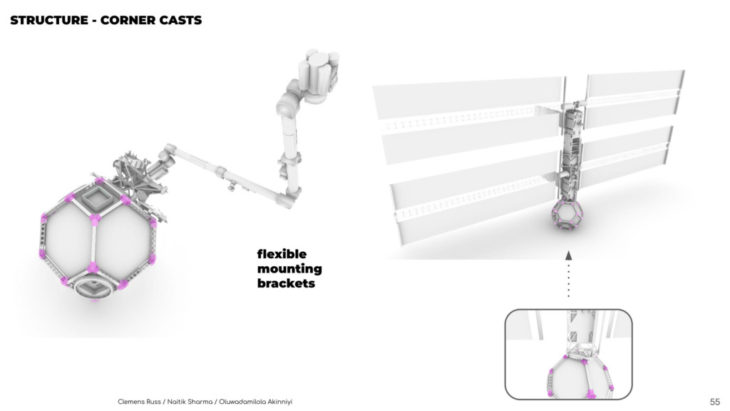 the structural parts of the corners use a simular approach as cornercasts of iso standard sea containers. they enable flexible mounting of the modules. use them as mounting brackets for PV arrays or i.e. robot arms.