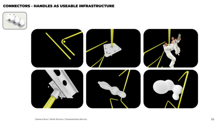 - prefrabrication on earth – full in situ space fabrication is still under trials, therefore our team focused on manufacturing on earth as a start point, to enable robotic fabrication in the future through reusing parts as a vision.