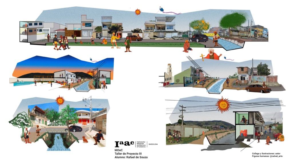 El río Botas se encuentra en Río de Janeiro, en la Baixada Fluminense. En este proyecto busco soluciones para un tramo de 1,4 kilómetros del río, utilizándolo como actor principal para las soluciones que se distribuirán alrededor del curso de agua. El río Botas se encuentra actualmente en un proceso de canalización como “solución” a las inundaciones que se producen en la región, sin embargo hay varias soluciones que se podrían presentar para este sitio, no sólo en el río, sino también en su entorno, este proyecto busca mostrar la relación de los residentes con las aguas que es su entorno.