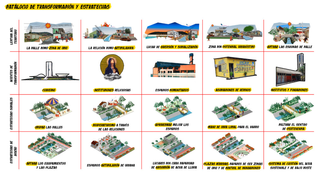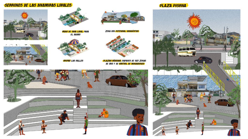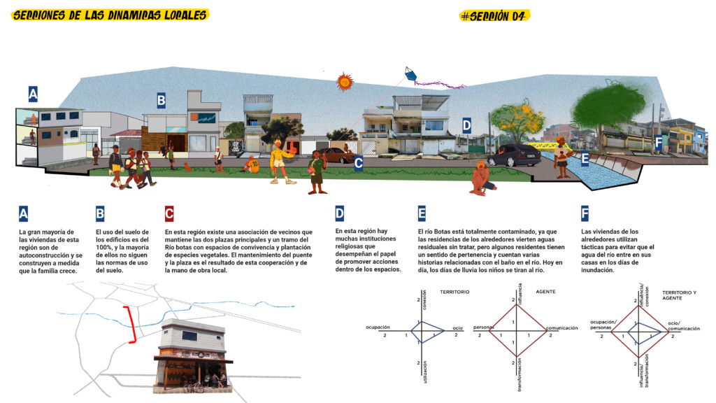 Las estrategias de diseño siguen como complemento a las directrices sociales que se aplicarán primero en la región. A partir de este entendimiento, se eligieron tres puntos de este escenario para la ejecución de la conexión de la red urbana y la ocupación territorial de las riberas del río Botas de manera que se minimice el impacto de las inundaciones, ya que con el cambio climático este fenómeno será cada vez más frecuente.