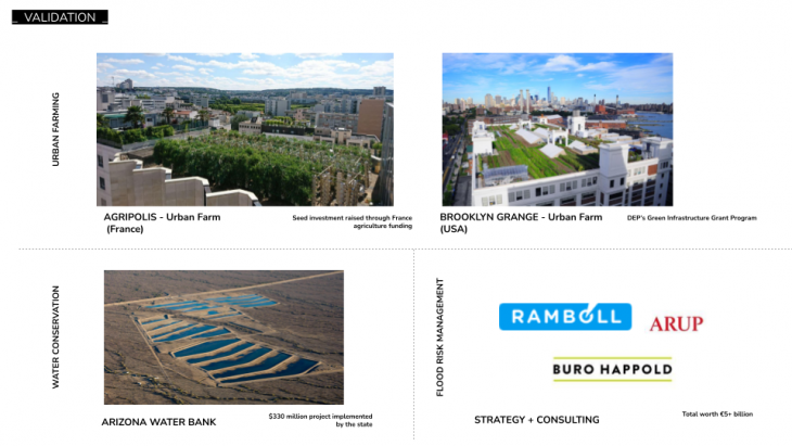 Many countries have invested in urban food production. France has funded the largest rooftop farm in the EU. New York is making the sae investment through their Brooklyn Grange program. Water preservation and utilization has already started in Arizona where they’ve created a water bank. Whereas flood analysis is a very developed industry due to its increasing need.