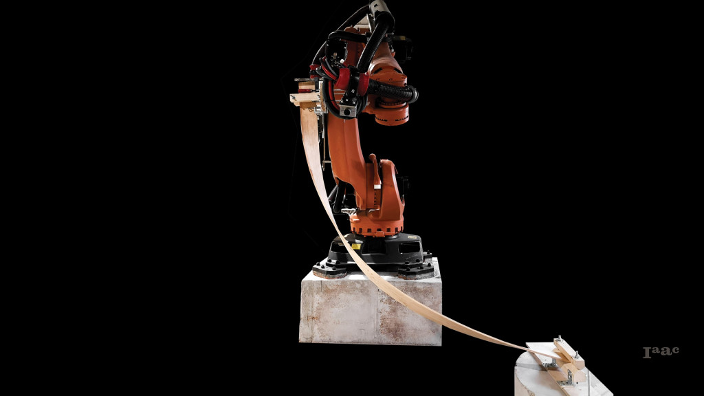 Robotic Active Wood Bending is a project of IaaC, Institute for Advanced Architecture of Catalonia