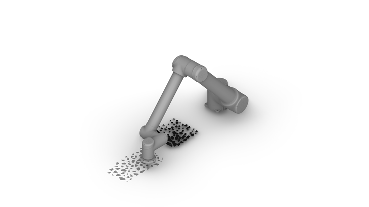 Simulation of the randomized stock being recognized and robotically fabricated to create the final design output.