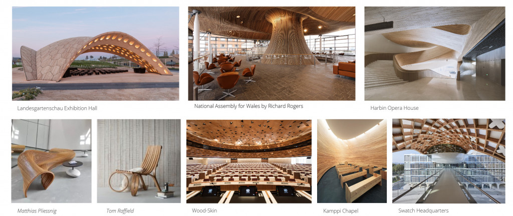 These are some of the projects used as a reference to carry out this research project, the innovative uses of digital and robotic advancements and the possible applications in the architectural and construction sector are the core for our interest in the wood bending practice.