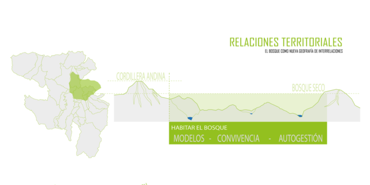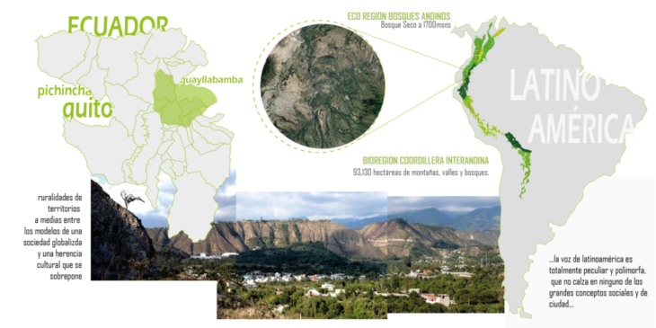 Los territorios andinos por su condición montañosa se divide por “hoyas”, que albergan distintos tipos de valles y bosques; en Ecuador la hoya de Guayllabamba encierra un bosque seco andino a 1900msnm, con cualidades ecosistémicas muy peculiares. Este Bosque dibuja un nuevo limite de acción territorial que rompe las divisiones geopolíticas y abre nuevas oportunidades de interrelación.