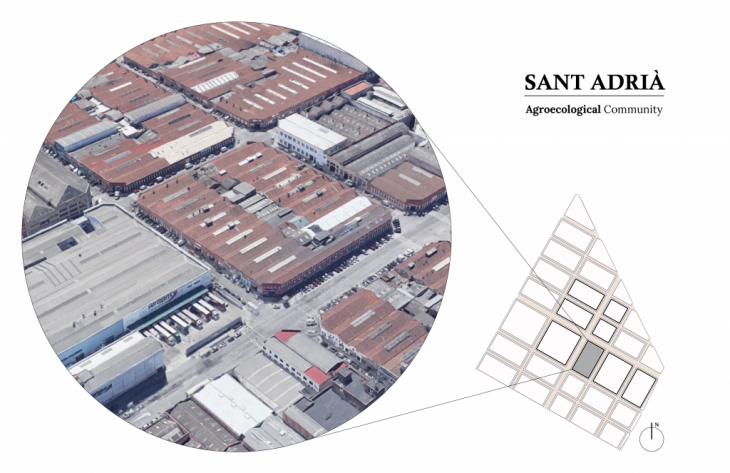 Considering Spain as the country with the largest organic farming area in the European Union, we expressed this condition as an agroecological project. Also, the need of affordable housing and the current technological advance made us understand the importance of perceiving the housing space as a productive one. Usually, as being part of a complex system of networks inside the city, housing projects are perceived as consuming spaces but if this condition is reversed, housing and industry could generate a new way to afford living. Reshaping the way humans live inside cities must consider also transforming the activities and systems that the habitable spaces allow, and by this contextual opportunity analysis, we decided that agroecology, industry, and housing could coexist in Sant Adrià project.