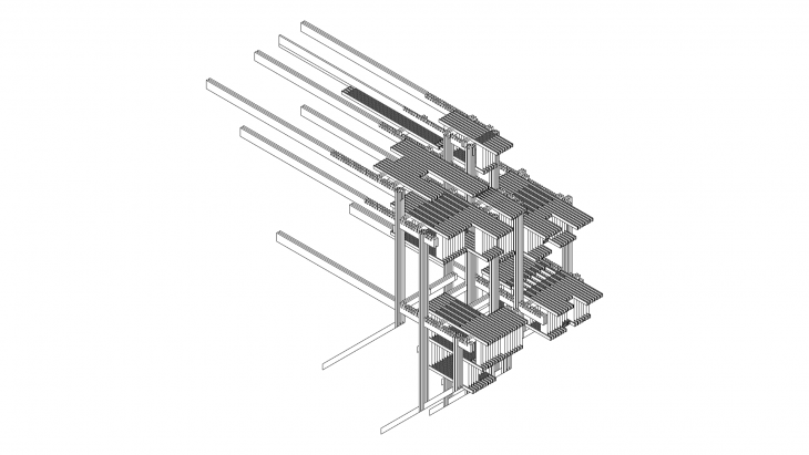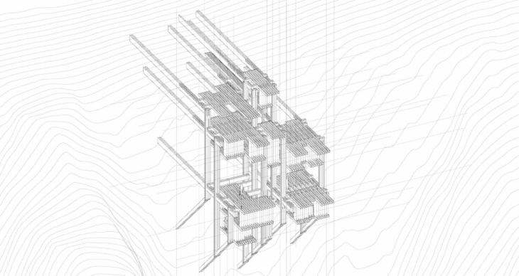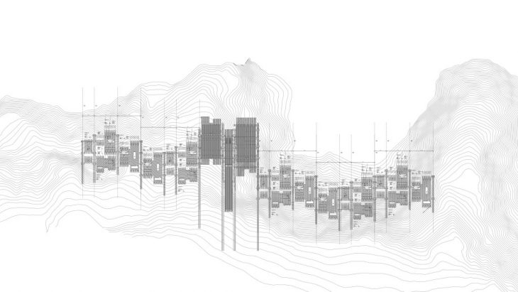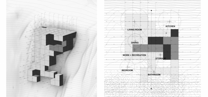 Vertically stacking and clustering those resulting rooms, multiple settlement positions are exhibited. The ‘in between’ zones allow for common areas between households.