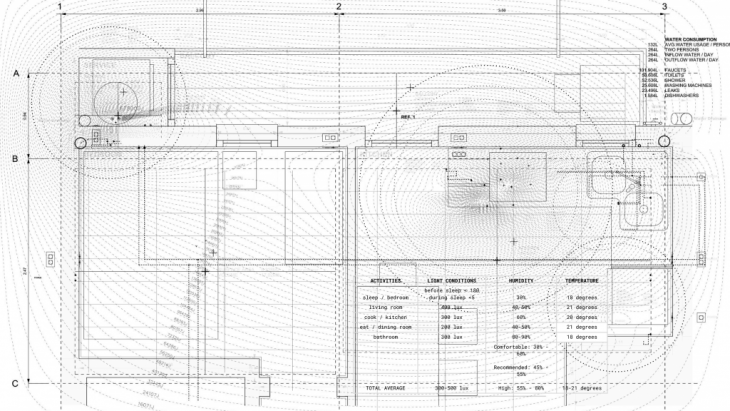 Daily activities in a household can be read as landscapes of energy. The interaction between the energies consumed and produced serve as a starting point for our design and programmatic distribution strategies.