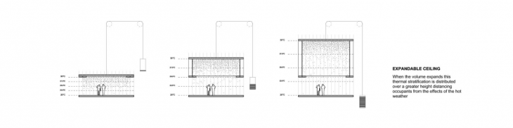 Each room expands and contracts creating ever-changing fluid spaces while maintaining a comfortable climate for living with the help of condensation and evaporation.