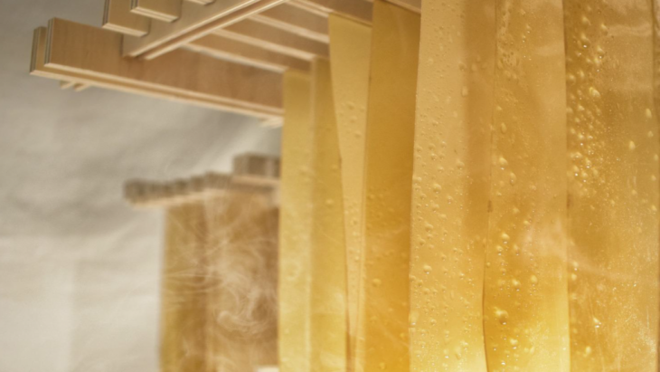 During the day, the latex screens are clipped on the back so that as they stretch, the airflow slows down in order to improve condensation.