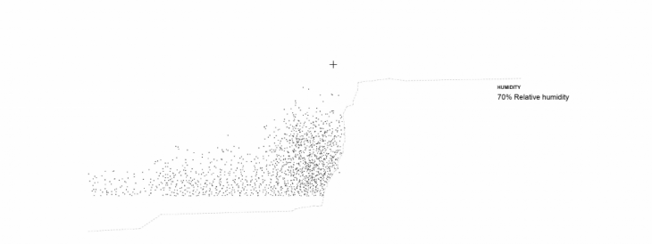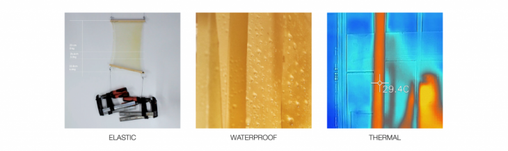 By deforming latex, and changing its temperature, we can condense water from the humid air to create our own micro-climate in the project – stretching the climate back into the zone of comfort