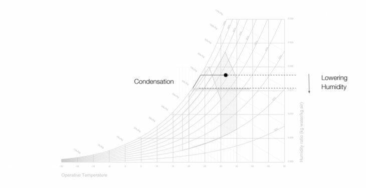 But there are natural mechanisms that can improve the climate. When air temperature decreases below the dew point temperature, the humidity in the air condenses into water – lowering the humidity