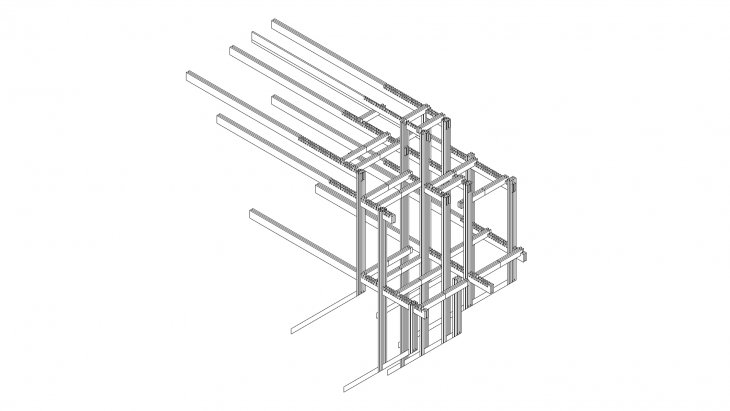 A system of vertical structural frames extend from the landscape to maximise vertical movement and windflow.