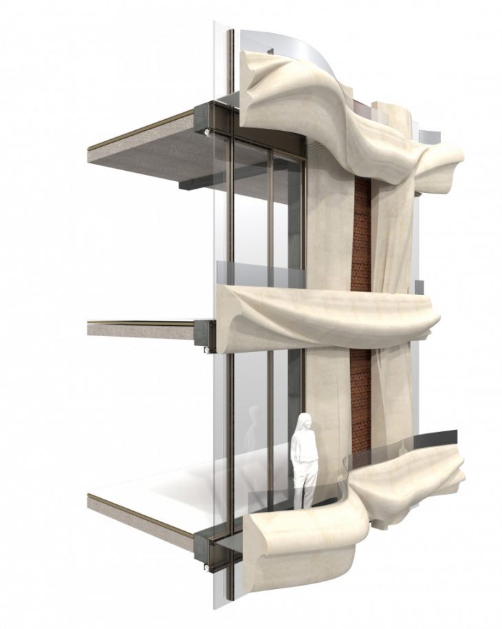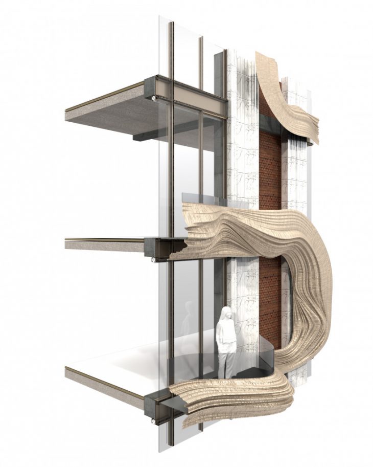 For a first form study and to visualize the capabilities of this system, the extracted section profiles were used to be applied onto another existing building with less complex topology on its façade. The most sustainable building is the one which already exists.