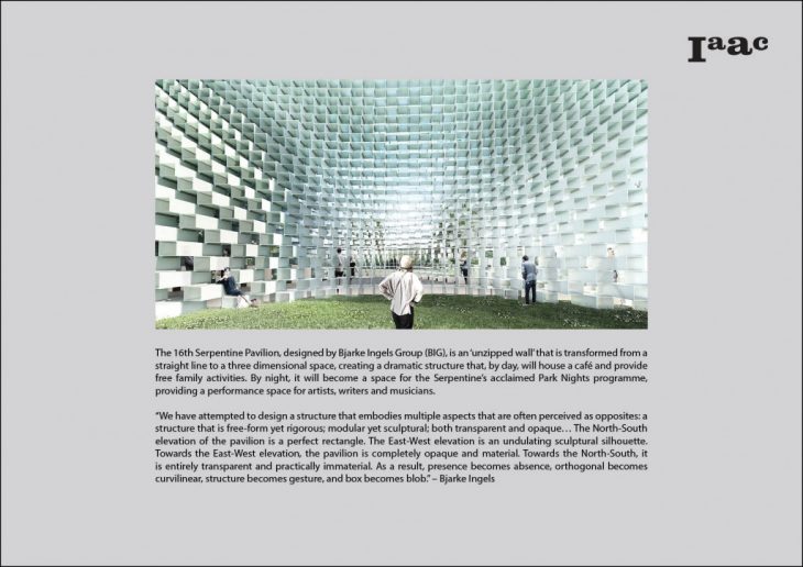 The 16th Serpentine Pavilion, designed by Bjarke Ingels Group (BIG), is an ‘unzipped wall’ that is transformed from a straight line to a three dimensional space, creating a dramatic structure that, by day, will house a café and provide free family activities. By night, it will become a space for the Serpentine’s acclaimed Park Nights programme, providing a performance space for artists, writers and musicians.