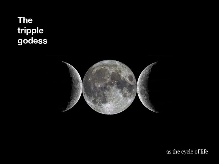 In neo-paganism, they consider the moon as a deity, called the triple Goddess, which inspired us for the storytelling of the hole installation.We took the 3 principal phases of the moon: waxing, full and waning, to represent the energy of the 3 major stages in life: birth, maturity and old age. The first one, represents youth and enthusiasm; the second one, stability in life; the last one, death, the end of the cycle of life. And we are going to represent each of these stages in our installation.